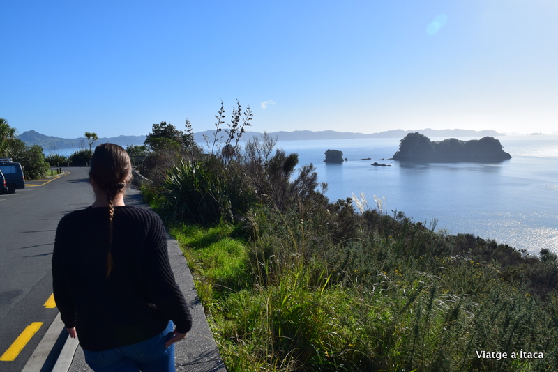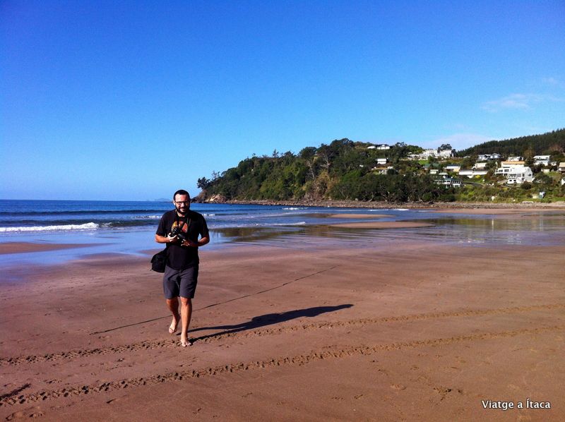 No hi hagut visita nocturna, ni cap entrebanc en una nit dormida de manera celestial. Els esmorzars ben aviat, i cap a la costa, que avui esperem dia de platja i cal aprofitar el bon temps per tapar d’alguna manera aquesta sensació de pèrdua que tenim, ara que ja estem a les portes de deixar aquest país, i sobretot d’això de viatjar en furgoneta que ens encanta. Carretera sinuosa, que poc a poc ens endinsa a la Península de Coromandel, a la costa occidental de la illa nord.