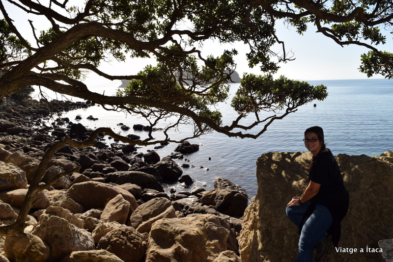 El nostre moment d’oració a la natura s’acaba a la Cathedral Cove, i comencem a suar mentre iniciem el camí de tornada que ara és ascendent. Ens aturem en alguna de les entrades des d’on tenir unes bones vistes d’alguna altre platja.