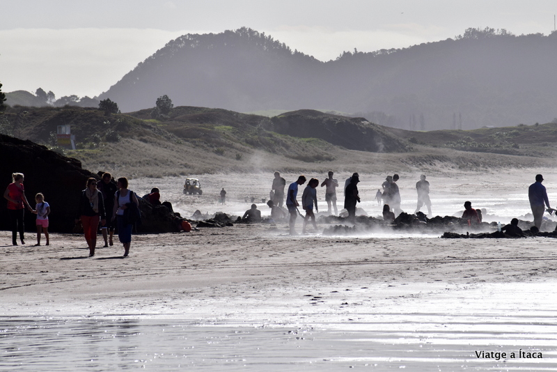 Aigua termal al subsol, que surt realment calenta, i no cal excavar massa per fer-la brollar. Nosaltres hem aprofitat la feina dels altres i ens hem remullat peus i cames, per a continuació córrer cap al mar a refredar-les. De fet, hi ha algun punt on no cal ni fer forat a terra… No veníem preparats amb el banyador, no pensàvem que això fos així, i ens ha sorprès molt agradablement. Si disposéssim d’un dia més, potser ens quedàvem per aquí, llogàvem una pala, i més que un jacuzzi fèiem un piset a primeríssima línia de mar… ☺