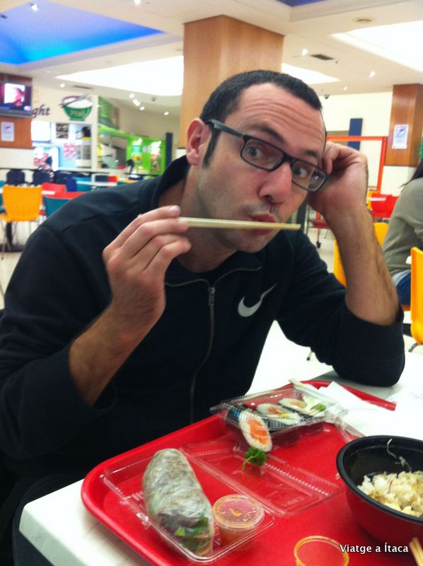A mida que anem arribant al centre, comença a ploure així que busquem un food court on menjar alguna coseta. I… com no para de ploure… doncs tornarem cap al hostel no? Però abans parem en un New World aprop a comprar alguna cosa per sopar.