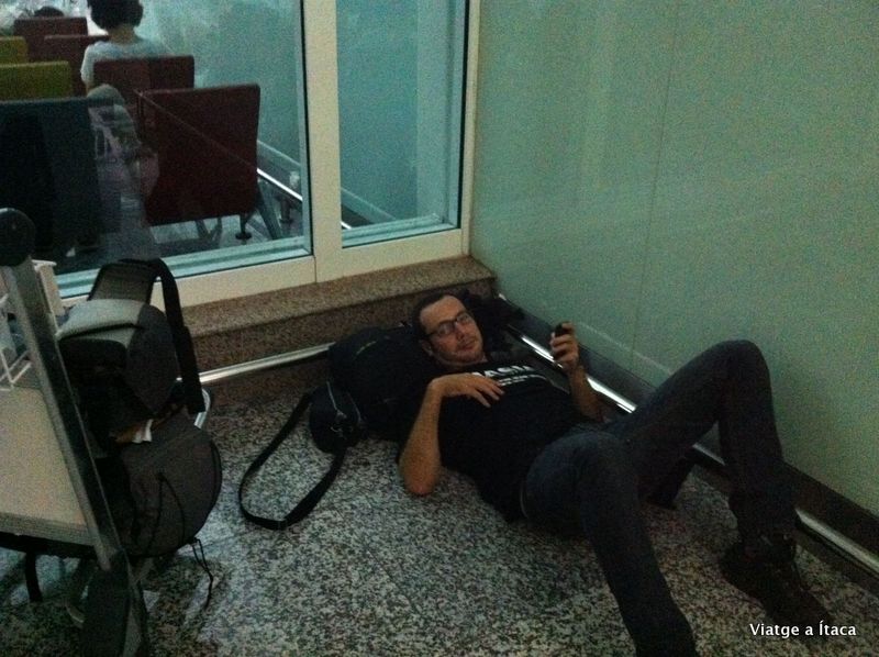 El problema… que arribem a Bali, cap a les nou de la nit hora local, correcció horària novament feta, i no sortim cap a Kuala fins a les set del matí. Després d’uns dies de consultes a ambaixades i demés, i vist l’error que vam cometre no canviant directament el vol, el resultat de l’estada a Bali ha sigut: Una nit divertida, dormint a estonetes a un raconet del terra de l’aeroport, i dos visats pagats (un per cap), perquè només pots fer trànsit si entre un i l’altre vol, passen menys de vuit hores.