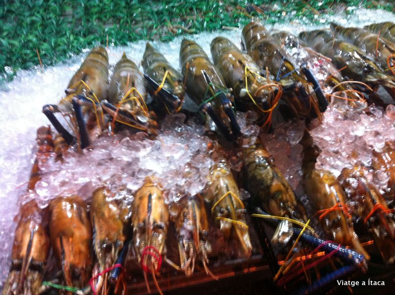Es tracta del carrer Jalan Alor, on cap al vespre, s’omple de vida amb infinitat de restaurants i paradetes que ofereixen tot tipus d’especialitats gastronòmiques. Peix fresc al carrer, on criden l’atenció uns gambots espectaculars que fan a la planxa allà mateix.
