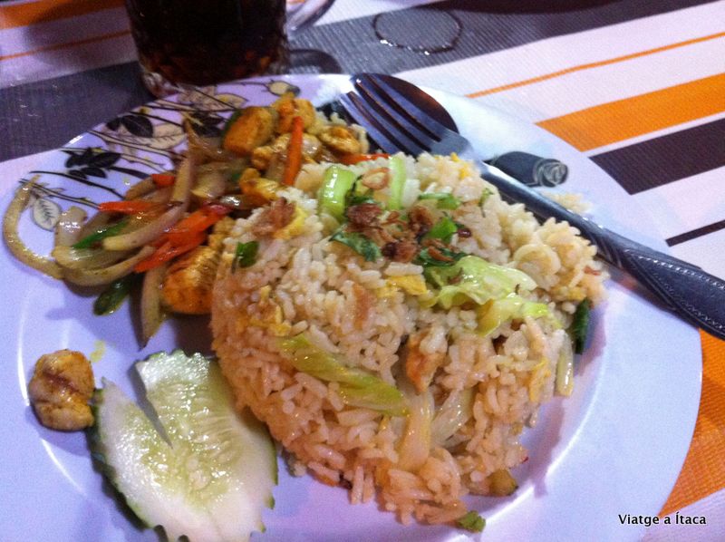 Lo millor, és que això de l’arròs no cal quasi bé ni demanar-ho per aquestes terres. Dieuen que a Kuala Lumpur, i a gran part d’Asia també, és tant barat menjar al carrer que la gent practicament no cuina a casa, així que nosaltres fem com ells, i a més tenim un bon arròs blanc que va be per la panxa