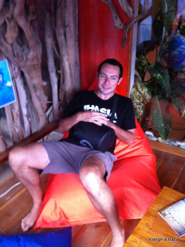 I per poder fer exercici primer toca esmorzar una mica per omplir la panxa i tenir reserves no?? Així que un bon pancake de plàtan al nostre guesthouse, que ens entra amb el preu de l’habitació, i cap a la tenda dels de Komodo Dive Center on hi hem d’estar a les 7:15 del matí.