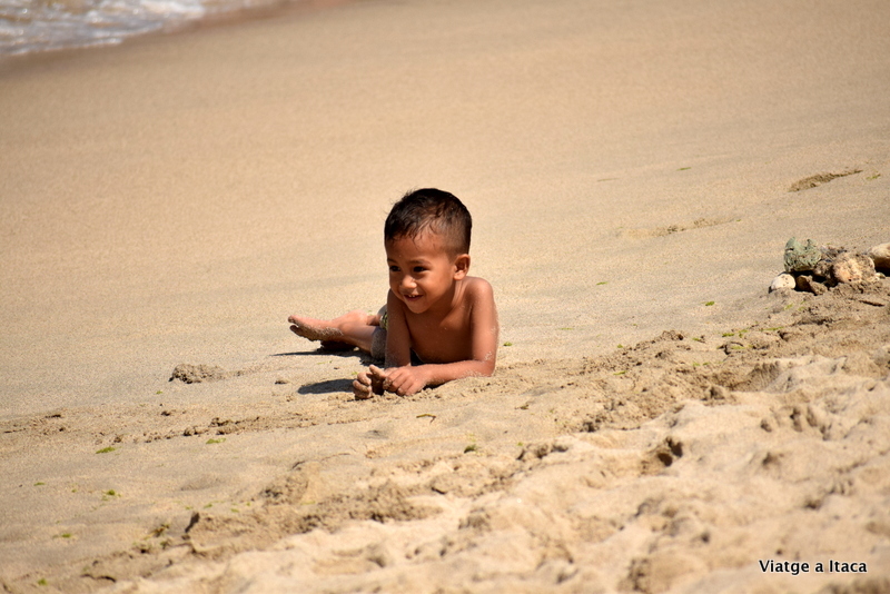 I ja queda l’última, diu l’Oscar que la millor. Com li agraden aquestes coses!!! Però ens encanta viatjar amb ell perquè ens transmet energia i en aquest viatge tant llarg que fem, ens convalida el fet d’haver de triar el que anar a veure, a més de que amb el seu inseparable GPS no ens perdem mai, tot i que de vegades fem més voltes del compte… ☺ Maui és el nom d’aquesta platja, i és preciosa. No sabem si la que més. El criteri de la comparació entre coses totes boniques el tenim oxidat.