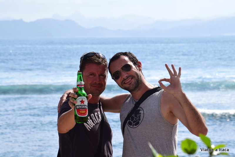 El sol decideix contribuir i apareix per dir la seva. No hi hem fet bany aquí, s’està massa bé gaudint d’una Bintang sota l’ombra escarransida del sostre fet de pedaços de fulles.