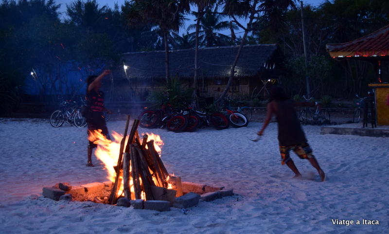 Les Gili Islands, les tres illes petitones que s’han convertit en nucli turístic, es troben a tocar una de l’altre. La nostre Trawangan és la més turística i de festa, la que tenim a tocar es diu Gili Meno, i diuen que és la més tranquil·la, ideal per a llunes de mel, i sense massa oferta ni d’allotjament ni d’oci. I després queda Gili Air, la que es podria trobar en un terme mig entre les altres dues.