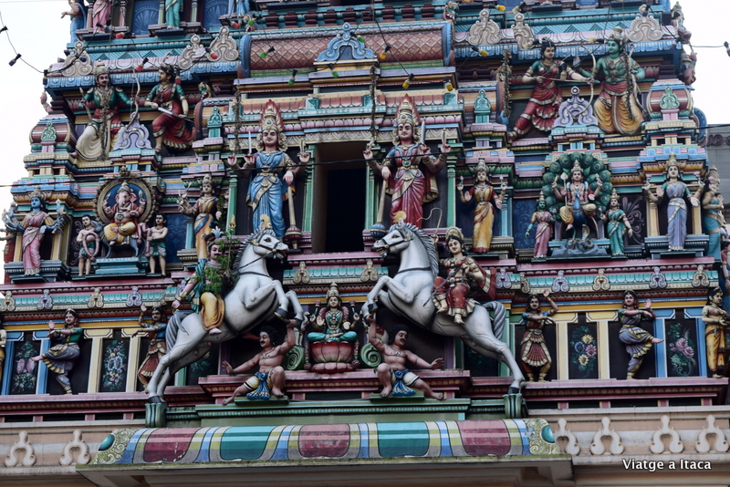 Temple xinès, temple hindú. Cultures i religions una a tocar de l’altre en aquesta localització.
