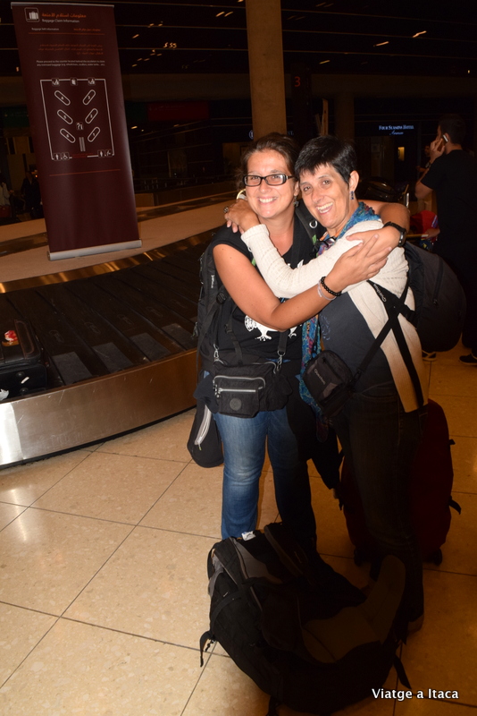 Traiem diners per pagar la pastarada que val el visat d’entrada, 40JOD per persona!!! I mentre estem fent la cua per immigració…. aquesta esquena em sona!!! Siiiiiii és la meva mare!!!! Que com nosaltres hem arribat abans d’hora ens trobem a immigració!!!