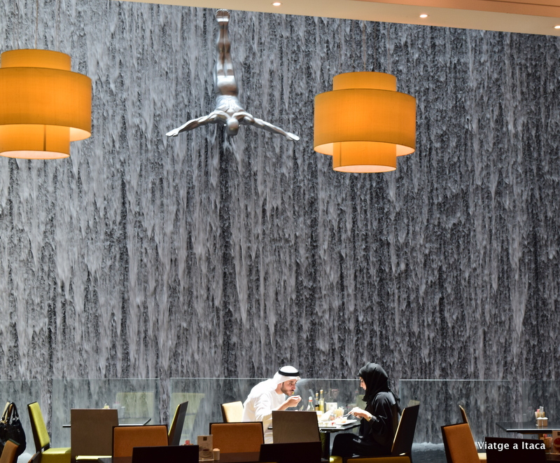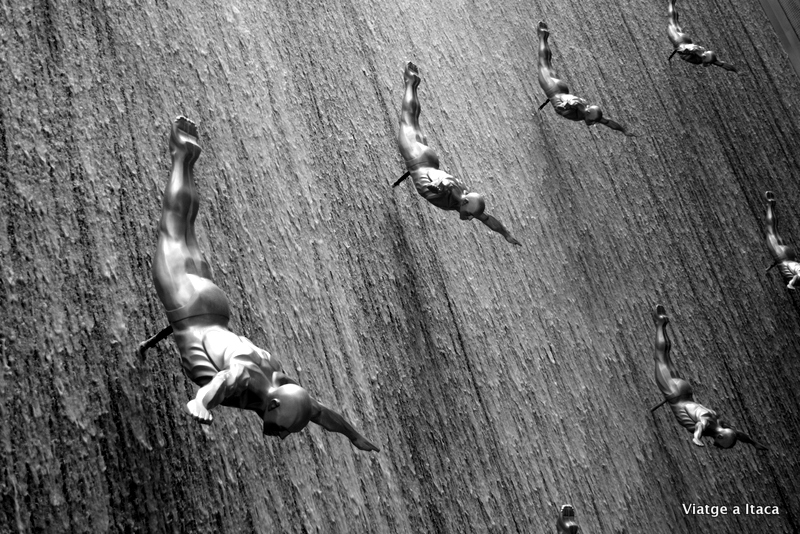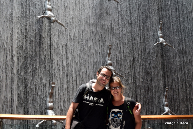 Una mica més desperts i reposats comencem a passejar pel centre comercial, i només a tocar veiem una font que ens crida l’atenció. No és la de l’exterior que segur que a la nit deu ser espectacular, sinó una interior on sembla que molts saltadors de natació estan fent el seu salt més impressionant.
