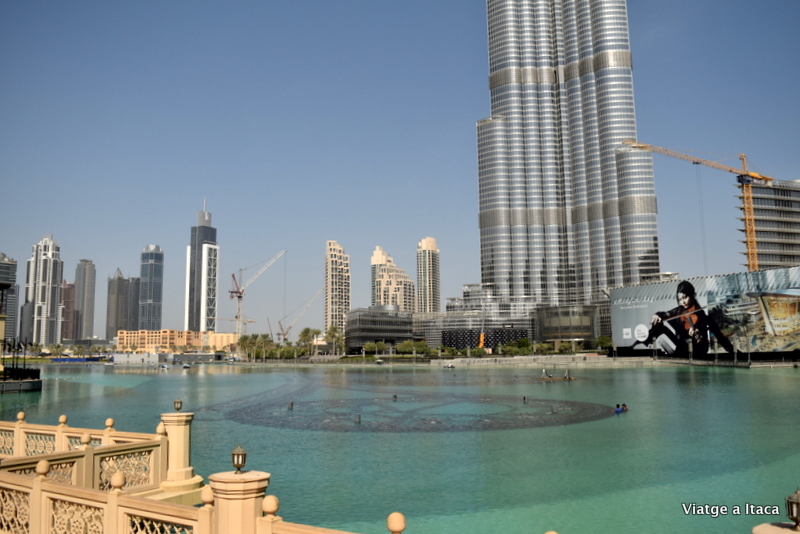 Reposades les esquenes decidim sortir a veure el Burj Khalifa d’aprop, i tot i que tot just són les nou del matí ja fa una calor que espanta. A fora hi ha també la font més gran del món, que a les nits fan un espectacle de llum i so que no podrem veure. Potser la propera vegada?