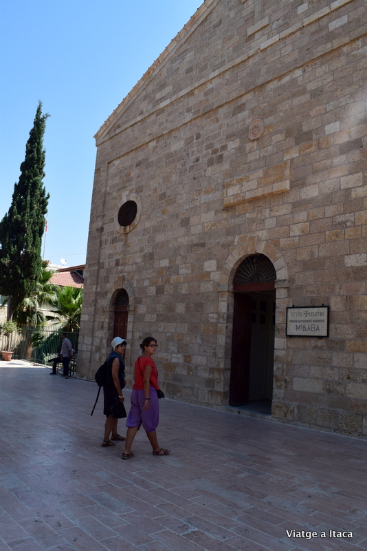 Anem per feina i entrem a la petita Basílica grega ortodoxa de Sant George. Darrere d’una cinta vermella el veiem. Es tracta d’un mapa-mosaic de l’època bizantina amb la representació gràfica més antiga de Jerusalem, Terra Santa, i la terra fins a tocar el Delta del Nil. Data del segle VI, i està molt ben conservat tot i que sembla que no hi ha massa mesures per preservar-lo.