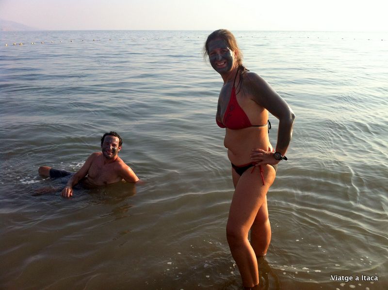 No és una experiència per estar-hi hores i hores, creiem, però una estona és un imprescindible. Diuen que val molt la pena veure la posta de sol des del mar. Nosaltres, i per la ubicació d’aquest hotel i de la seva platja, no val massa la pena, així que fet el banys i tret el fang de totes les parts del cos, decidim tornar cap al hotel, que ja estem a tocar del capvespre, i potser des de la terrassa el podem veure bonic.