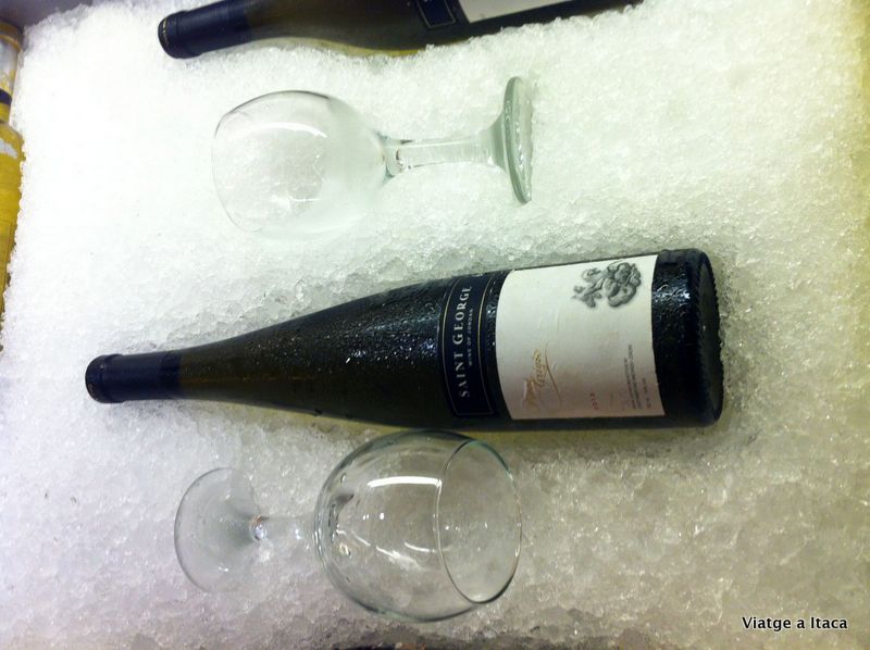 Així que pensant si regar el sopar amb algun dels vins que hi tenen, fem una volta per decidir quins plats portarem a la nostre taula. El ventall de plats no és exquisit, però no està malament, així que fem un variat de tot una mica, i per acompanyar, aigua que aclareix la vista i les idees.