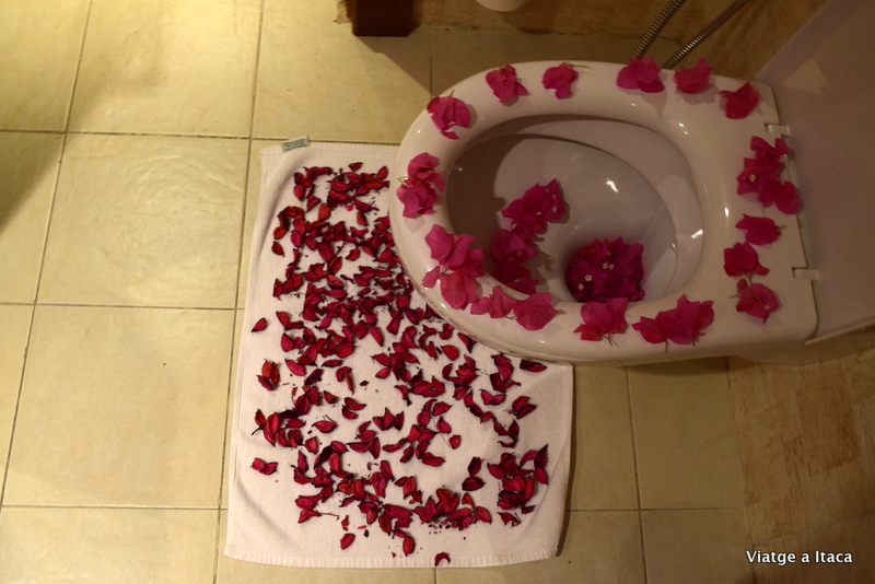 El llocs es diu Winter Warrick Valley, i està forçà bé. L’habitació que ens han donat pels tres, és una meravella(els vam escriure i hem tingut sort), amb cistella de fruita inclosa, i pètals de flors repartits per tot el lavabo. Sort que no tenim pressa per anar-hi, perquè no és ràpid apartar tots aquests despulls de boganvídia.