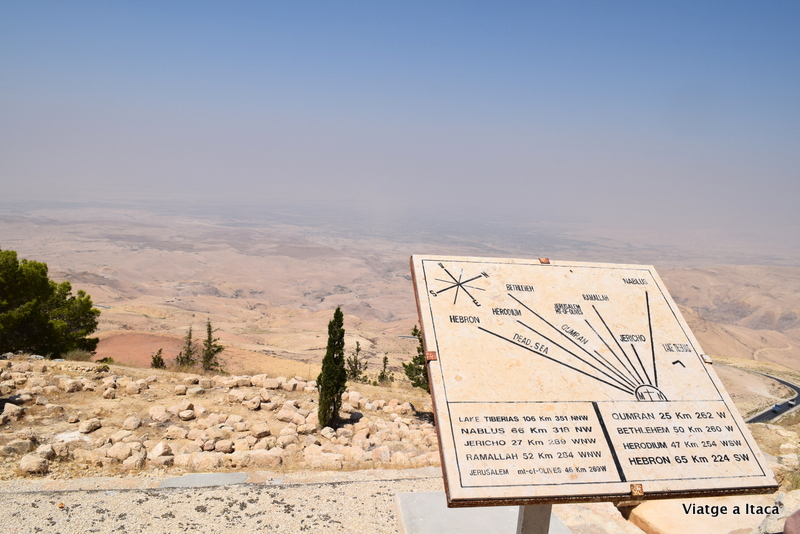 Tornem al cotxe, deixem la ciutat dels mosaics, i fem carreteres secundaries passant pobles no massa endreçats. Cotxes aquí i allà, que no sempre respecten el sentit del trànsit, i poc a poc anem guanyant metres fins arribar al Mont Nebo. Diu l’antic testament que aquí va ser on va morir Moises, i des d’on va veure la terra promesa. Els jueus, i els musulmans també l’admiren ja que es tracta també d’un profeta per a ells. Diu la Sagrada Escriptura, que un cop aquí dalt, i després de veure allò que considerava la terra promesa amb els seus ulls, Deu li va dir alguna cosa semblant a: “Ara ja l’has vist, però d’arribar-hi res de res, que d’aquí no passes…”