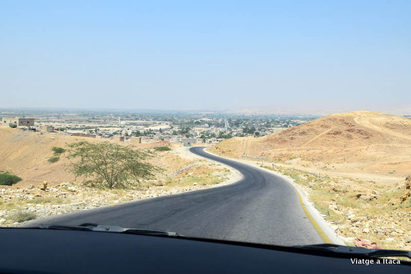 I allà s’hi va quedar, i fa molts anys van construir un monestir romà per commemorar el lloc on va morir. Fa uns vuitanta anys el van descobrir, i està en procés de restauració creiem, perquè no hi hem pogut entrar. El que si que hi ha i hem pogut veure, són unes vistes impressionants de la zona de Cisjordània, la ciutat de Jericó i la vall del Jordà, i si el dia acompanya, també es pot veure Jerusalem. Des de les alçades, i ajudant-te del mapa de localitzacions i quilometratge, et pots adonar de lo aprop que estàs de la zona de conflicte entre Palestina i Israel, i és que Jordània està enmig d’un sidral dels bons, perquè a més d’aquests dos, també fa frontera amb Siria, Iraq, i Aràbia Saudí…