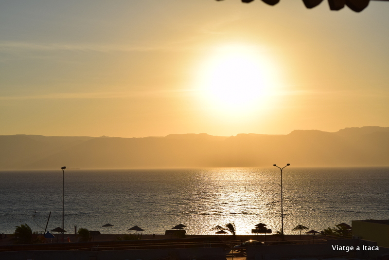 La gana comença a demanar atenció, i després de vestir-nos ens apropem al bar de la guesthouse. El lloc no està malament, però ens sembla més car del compte, i la cuina no ens apassiona, així que demà agafarem el cotxe i buscarem altres opcions. Bufa el vent, i fa calor, però ara s’està força bé. Deixem passar l’estona amb tranquil·litat, això hem vingut a fer. Deixem que el temps se’ns escorri entre els dits notant el plaer de que s’escapi, i no ens sàpiga greu. La companyia és grata, però la son arriba i toca anar a dormir. L’habitació i el llit ens espera avui, per demà el Mar Roig.