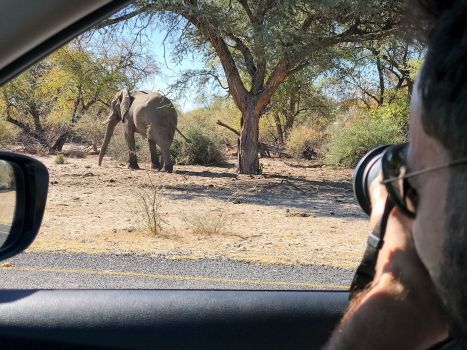 No ens demorem més del compte que avui ens toca fer uns 500 quilòmetres per arribar a destí, i tot i que sembla que les carreteres estan en bones condicions, no volem tenir cap ensurt. Asfalt en bon estat que anem devorant amb impaciència. De sobte, i a la llunyania una gran silueta gris aturada al voral que ens fa reduir la velocitat a mesura que ens apropem. Ja ens ho havien explicat, però la primera vegada que et creues amb un elefant quan transites per una carretera principal és una sensació que barreja la incredulitat i l’emoció.